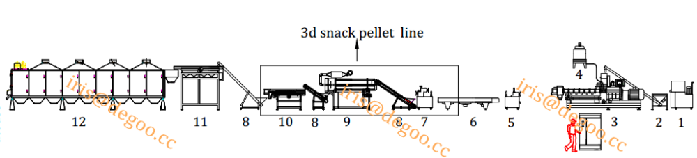 | Name | 3d 2d snack pellet production line from Jinan DG machinery company |