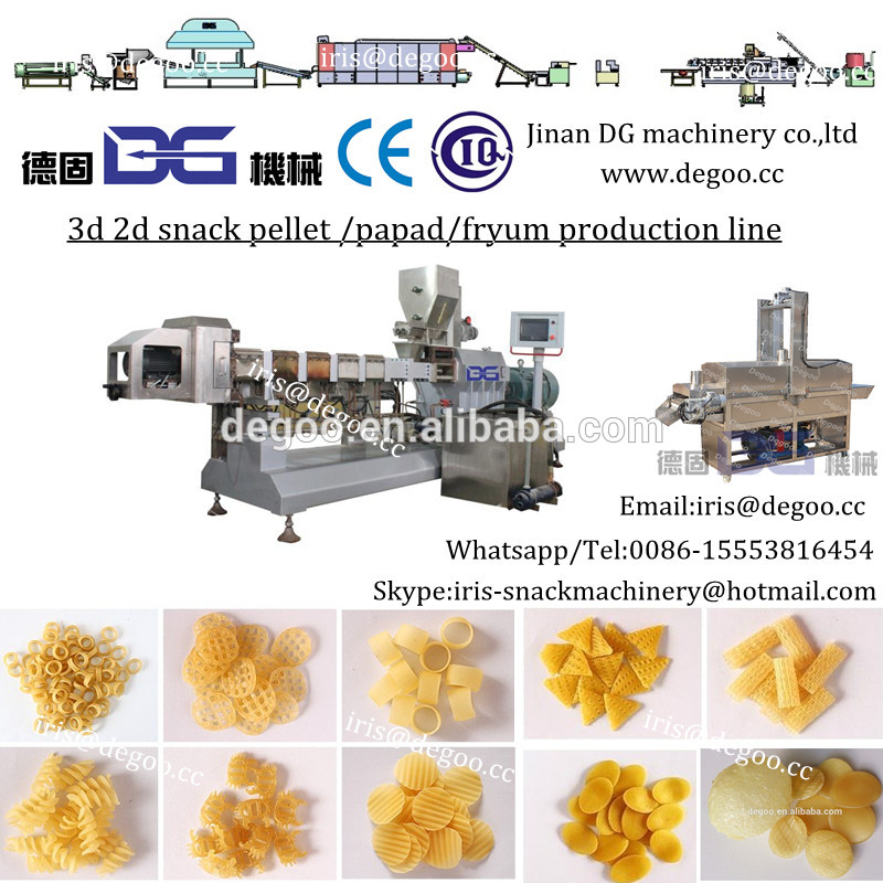 Turnkey project machines factory manufacturer 3d 2d pellet snack food papad production line/making equipment/processing plant