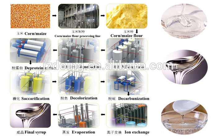 3. One set corn starch syrup processing plant can product three syrup: glucose syrup, maltose syrup and fructose syrup.