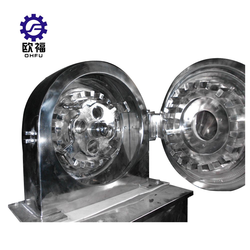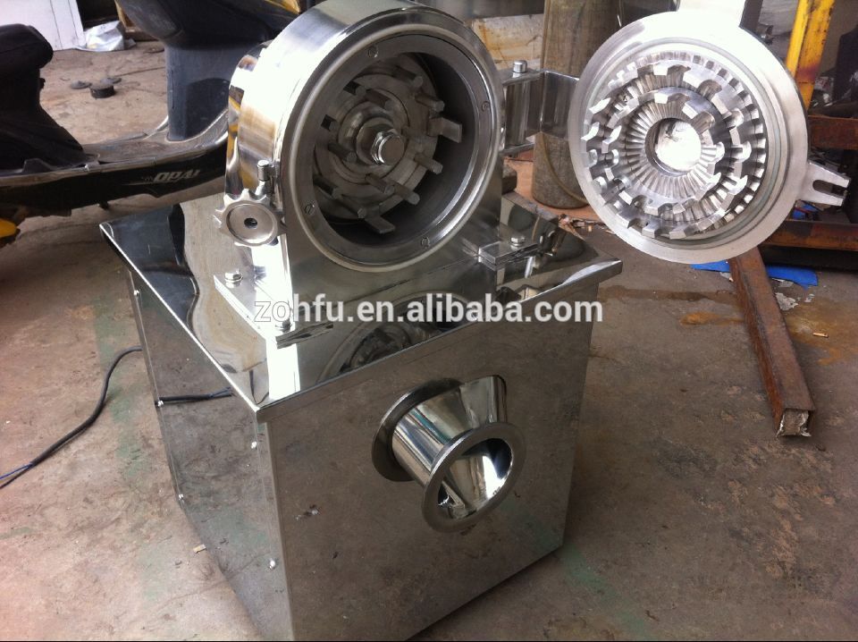 This machine use the tooth plate and fixed means of relative motion, make shattered by the impact, friction and comprehensive function such as the impact among the materials themselves are crushed. This machine of simple structure, strong, stable operation, crushing effect is good, crushed material can directly by the host grinding cavity vent, the particle size can be obtained by changing sieve different aperture. Casing wall all the machined surface smooth, changed the former type wall roughness, the phenomenon of accumulated powder, medicines, food, chemical and other production full of "GMP" standard requires all machine made of stainless steel material, 30 and 40 type of crushing chamber can match water cooling jacket, and has reached the international advanced level.