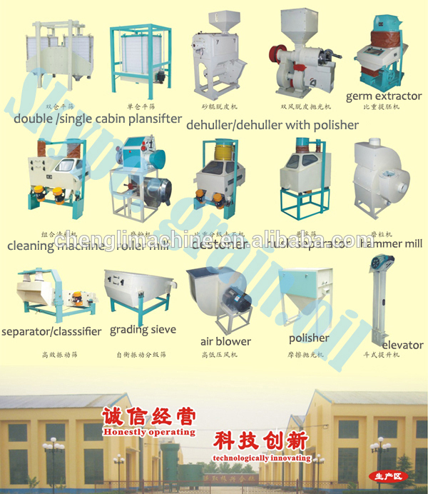 1. This series of corn product line build up with: corn process equipments (e.g.: corn huller, corn polisher, germ extractor, new super fine corn grits machine etc.) and foodstuff process general equipment (e.g.: hoist, density corn destoner, plansifter, miller, flour cleaner). The quality of finished products: corn flour and fine feed up to 80-120 mesh.