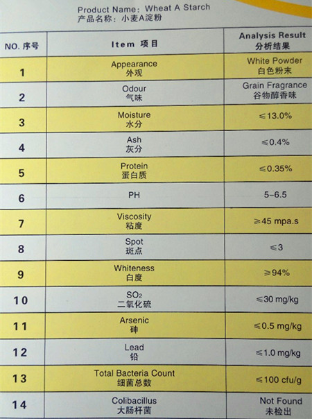 Wheat A starch is pure white, fine and smooth, glossy, with high transparency and high resistance to deformation ability.