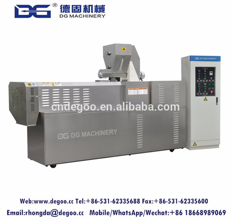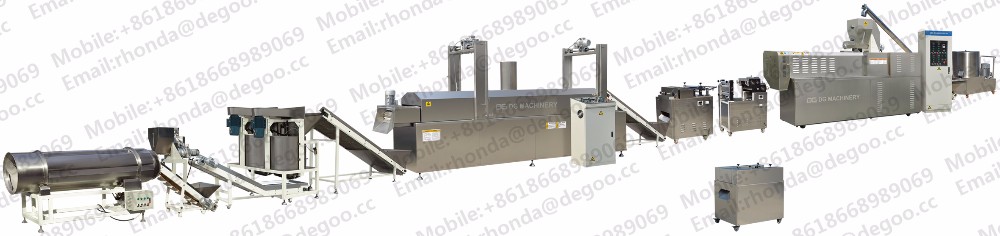 12. Applied to make all kinds of extrusion products such as corn flakes , cereal snacks ,puff snacks ,wheaten snacks , 2d /3d snack pellets , pet food ,fish feed ,soya protein ,nutritiobal powder ,modified starch and so on. .