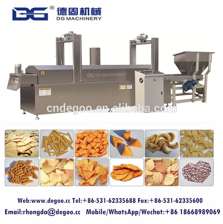 This machine consists of frying machine, oil filter device, control system, pump and pipes. It is used to fry different shape of snacks in continuous process.