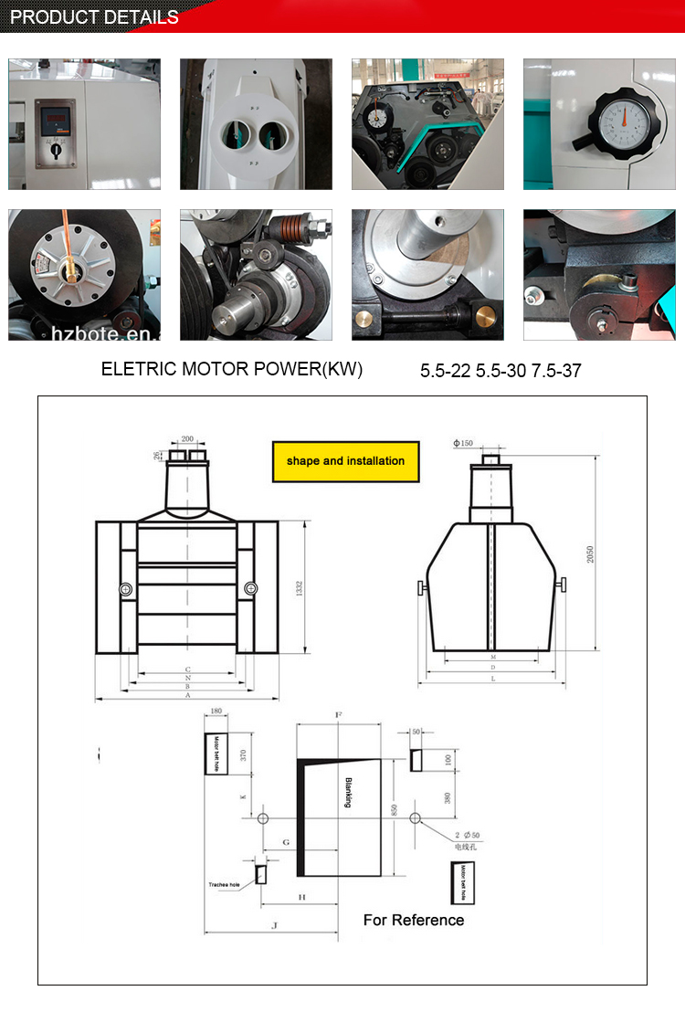 6. The parts surface of flour milling machine adopts the pure manganese black phosphate treatment, covers a protective film so that it is bright and not fade.
