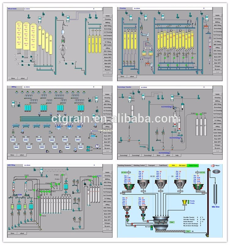 This is a standard and complicated thorough flow sheet which can remove most of the coarse offal, middle size offal and fine offal in the wheat which contents about 2-3 percentage offal. Of course if the wheat is clean enough and the less machine will be used and the investment will be lower.