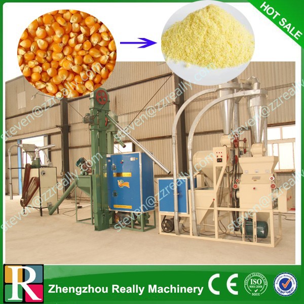 This maize meal production process can be used to crush soy bean, sorghum, barley, grain, legumes, rice, maize, dried sweet potato slices, soy bean cake etc.