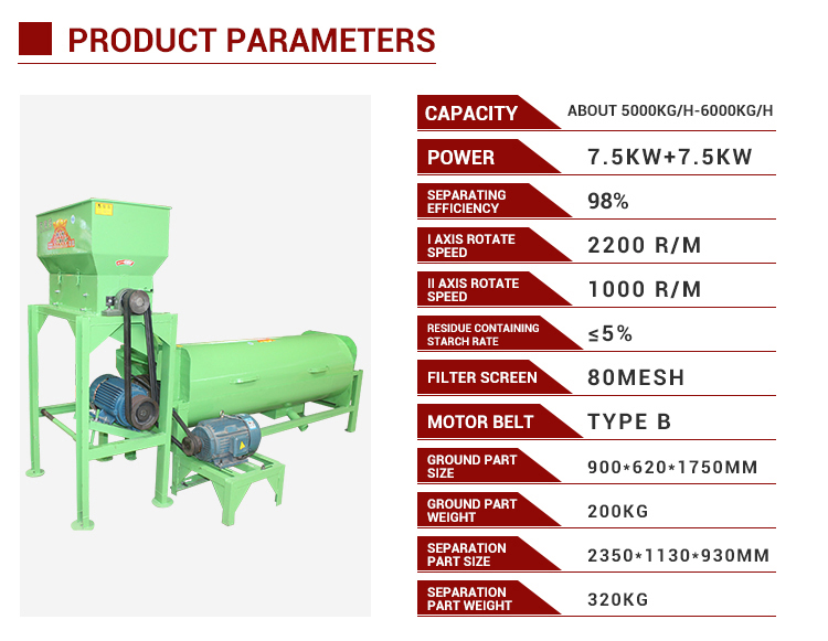 Specialties: 1,Automatic separation of residues and starch slurry. The ground part and the separation part can be used separately or in combination.