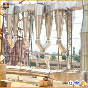 Drying the de-watered cassava starch in the air dryer to get dry product.  Starch reaches sieving system. High efficiency cooling starch sifter is used to cool starch and