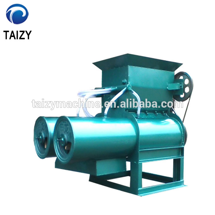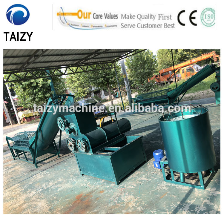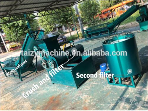 feeding port is compsed of roller with shape rack,when feeding, raw materails is crushed into very small pieces to drop to below chamber which is with inside brush and outer screen.The screen hole diameter is very fine, only starch with water could though it out from the screen,big scum come out from the end of the machine.