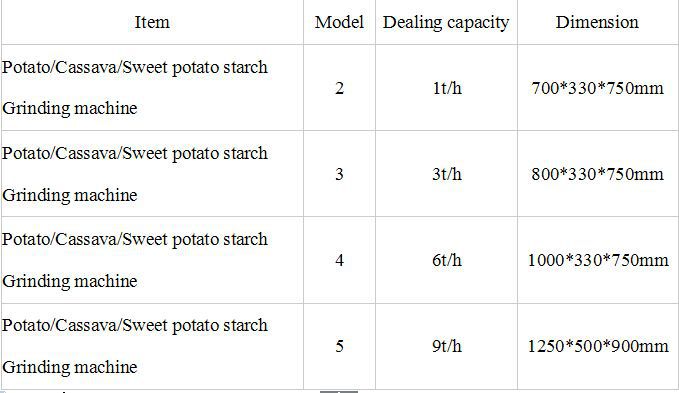 What Specifications of our cassava starch making machine?
