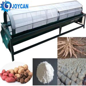 The cassava extracting machine is fully enclosed energy-saving, reasonable structure, excellent performance, handsome in appearance, with automatic feeding, broken separation, slagging, time and labor, change the screen time can be completed within half an hour to improve the starch Powder extraction rate, starch extraction rate of 98% or more, this roller with water production, so that starch whiteness is higher, the aircraft installed using maintenance, easy to move, is the ideal individual individual equipment. It is used for extracting starch from cassava, tapioca, potato, sweet potato, kudzu root etc.
