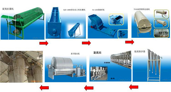 Raw material(sweet potato,cassava,potato)-----Washing and peeling----Crushing----Prefilter-----