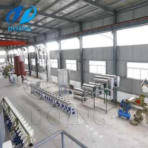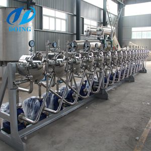 Potatos through screw conveyor to rasper to crushing, in this section, potatos will be crush to potato milk.