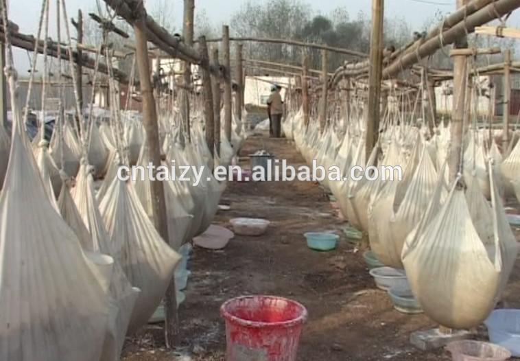 The type starch production line consist of the washing and peeling machine , feeding device, grinding and filtering machine and starch purifying machine . The capacity of the line is 5t/h , which is suitable for small farm , home using and small type vermicelli processing factory .