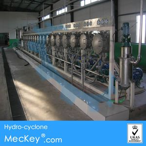 The 16 grade hydro-cyclone station guarantees the quality of the starch completely, which is the most important unit of the entire production line. The starch slurry enters the third stage of the hydro-cyclone for concentration, and the fresh water enters the hydro-cyclone from the other end which washes starch. The overflow enters two grade recovery station to recycle starch, the bottom flow is washed through 13 grade washing cyclone to ensure that the starch slurry does not contain impurities and final starch will be in accordance with national standard.