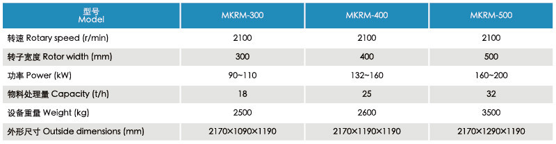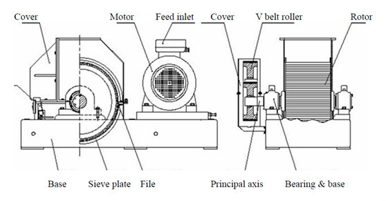 The device is made of stainless steel, the rotor is made of special stainless steel by forging process, and rotor is installed on hundreds of specially designed, two-way combination rasps with the thickness of 1.25mm.
