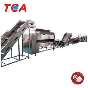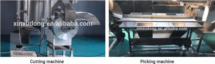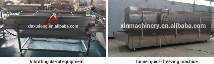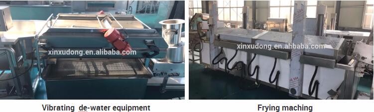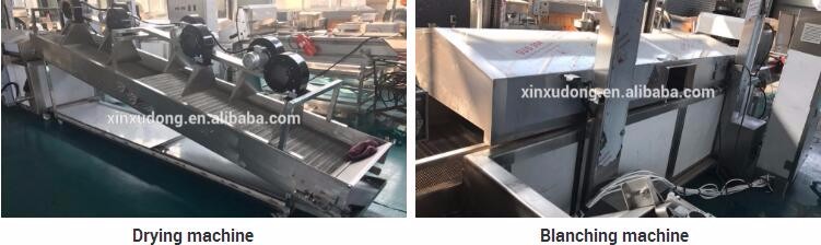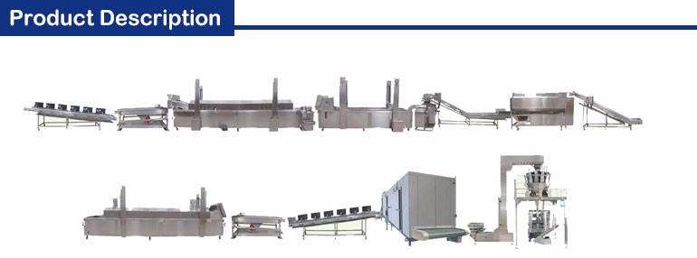 Raw material→washing→peeling→picking line→cutting→washing→blanching→drying→frying→seasoning→checking→packing