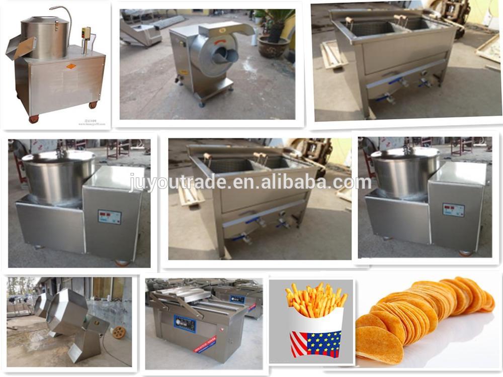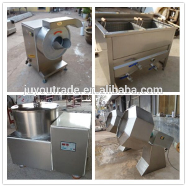This potato chips production line is the best choice for making potato chips with low investment and power consumption. This whole line is made up of potato washing peeling machine, potato cutting machine, blanching machine, dehydrating machine, frying machine, deoiling machine, flavor mixing machine and nitrogen filling packing machine.
