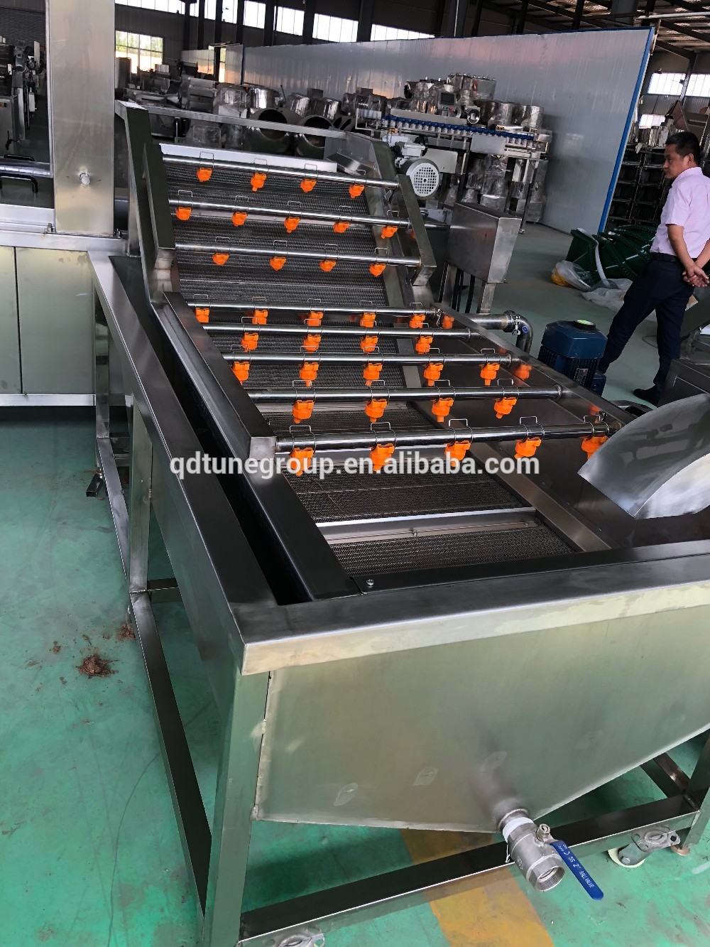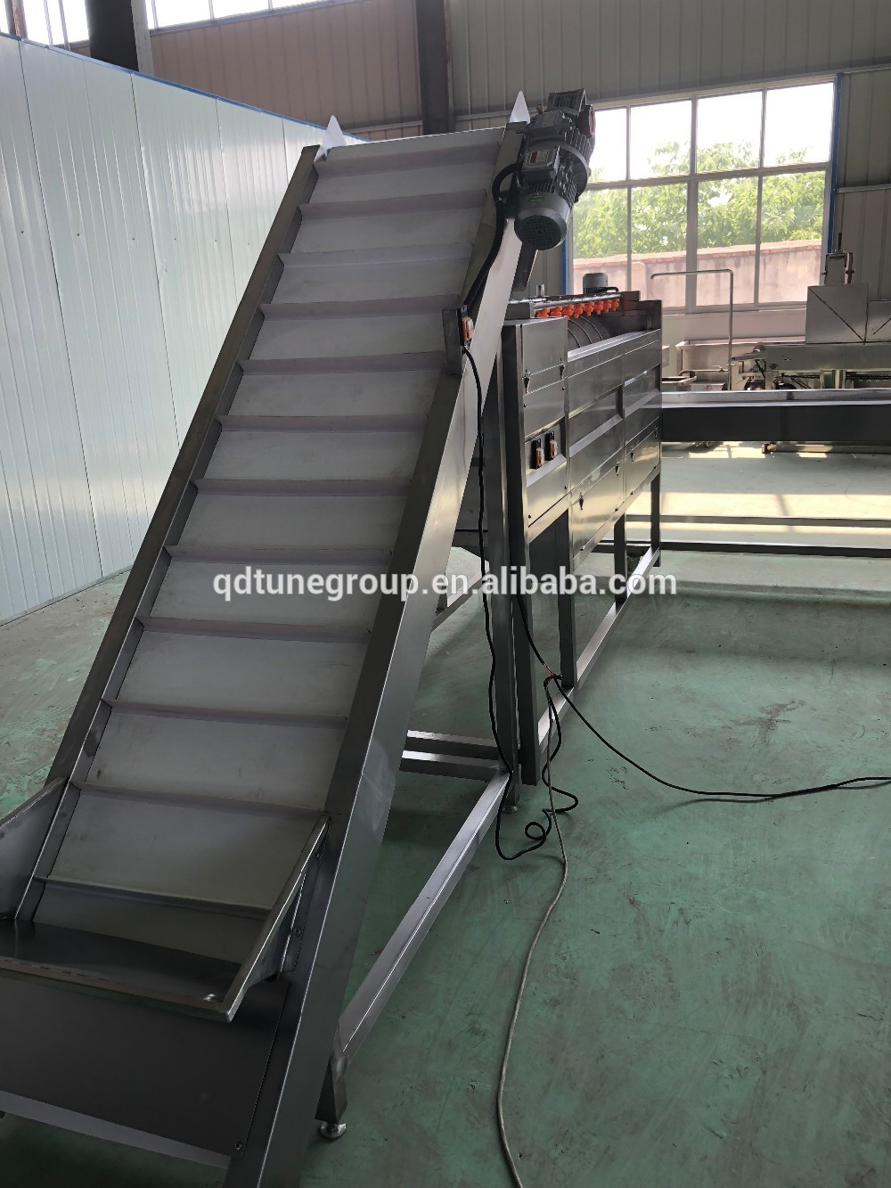 It is used to preclean potato,soften the potato skin, then hoist potatoes into washing and peeling machine.2. Washing and peeling machine