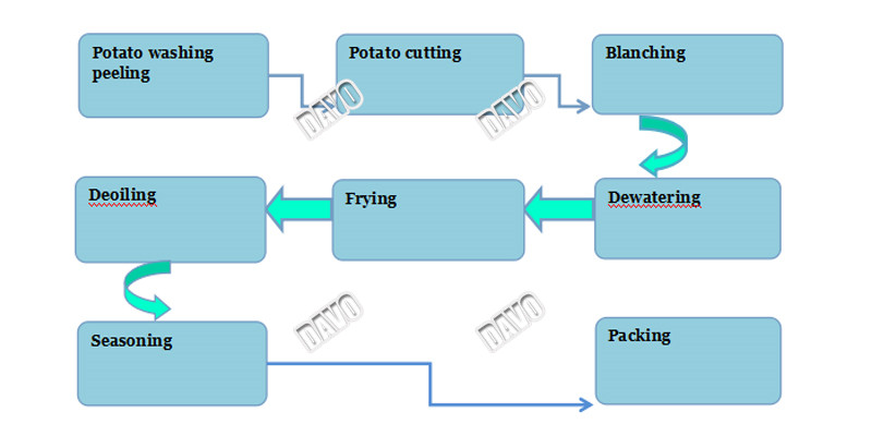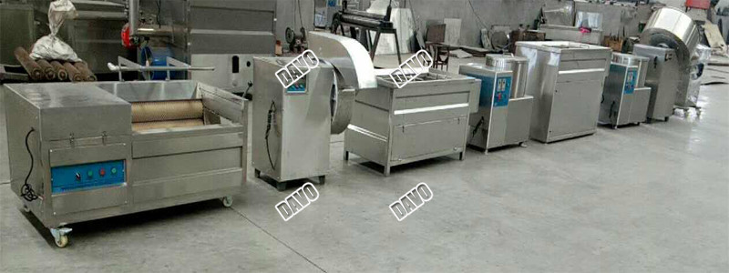 2. It is including 8 sets machine for the semi-automatic potato chips machine line. Such as potato washing peeling machine, potato chips machine, blanching machine, dewatering machine, frying machine, deoiling machine, flavouring machine, packing machine etc.