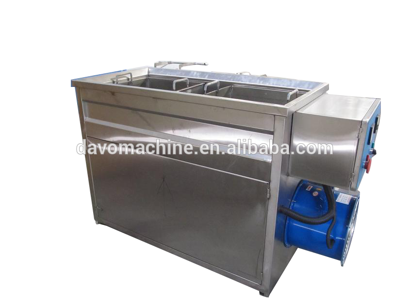 Frying machine | | Capacity:100kg/h Power:36kw Voltage:380v,50hz Weight:140kg Dimension: 1000*500*900mm