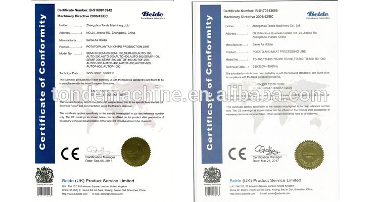 3) This fully automatic potato chips plant is a continuous working type production line, including everything from peeling to final product packing.