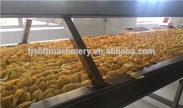 Fryer is used for frying the potato chips with the edible oil. there are many moulds in this machine, the moulds function is for making the round potato chips to oval and curving shape.