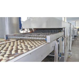This conveyor is used for cooling the potato chips and transfer to the packing line. The material for conveying belt is Food Grade PU, The material for the machine body is stainless steel