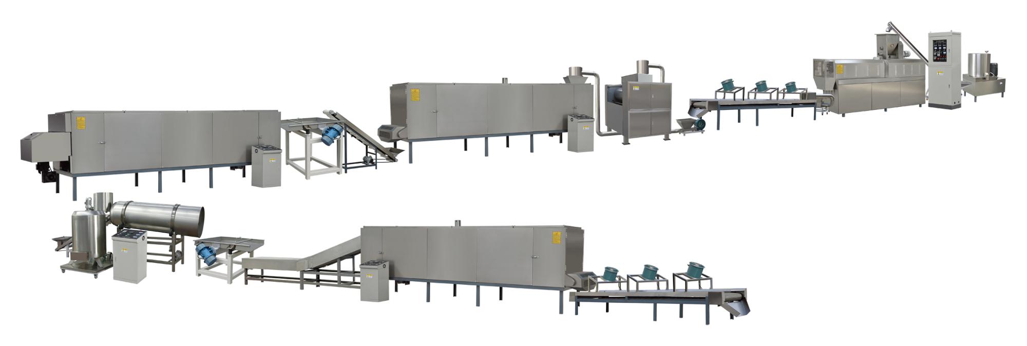 Main products of our company: snack food extruder, dog food extruder, fish feed extruder, cornflakes extruder, rice extruder, nutrition powder extruder, histones extruder, soy extruder, bugles extruder, chips and crackers extruder, rice crust extruder, rice krispies and Megoo extruder, fry extruder, golden angle extruder, modified starch extruder, fried instant noodle production line and microwave roasting and sterilization equipments.