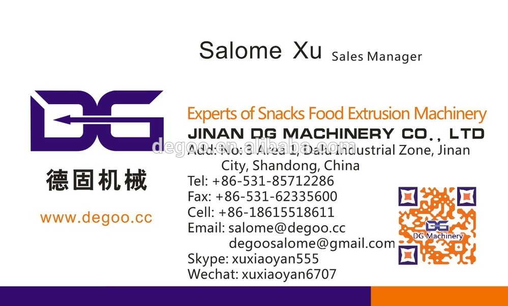 As a leading manufacturer of inflating food machinery, we are selling and marketing the machines to many countries in the world. We keep improving our machines and upgrading techniques to satisfy the requirements of all the clients. Depending on our rich experience and professional experts on the extruded food industry, we could offer the most suitable and complete program to assure that your investment will get biggest profit.