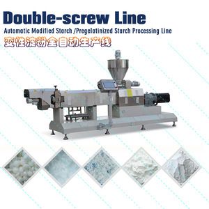 Pre-gelatinized starch/Modified starch processing line can product Denatured Starch, Pre-gelatinized starch is an effective and economical fluid loss agent in water based drilling fluids, which is a starch derivative. It is not bacterial degradation when at 120℃, environmentally acceptable and non-toxic. Modified Starch can produce a thin, slick, tough filter cake and promotes faster penetration rates with reducer friction. It can be used in all kinds of drilling fluid system. Pre-gelatinized starch is also sometimes "pregelatinized" to make them easier to dissolve during product manufacture. Modified starch is widely used in oil drilling, textile, paper and food industries.