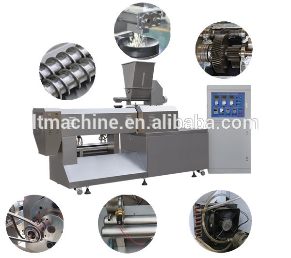 2. It adopts speed-adjusted converter on feeding system, extrusion system and cutting system. Food grade stainless steel twin screw feeding machine guarantees stable materials feeding in the whole food process.