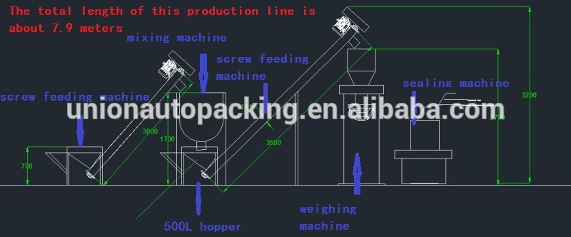 Scope: applicable to the weighing package of various chemical powders and open pockets material contact surface adopts 316 stainless steel;It will be fixed below the mixing machine The weighing range is: 1kg - 50kg;