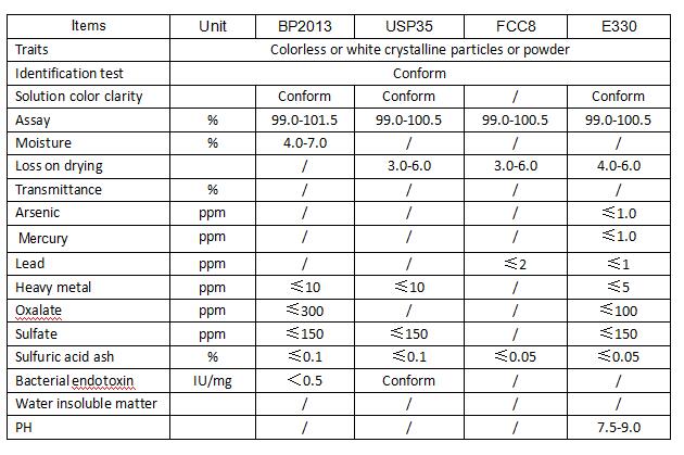 Price of potassium citrate powder from china citric acid powder production plant