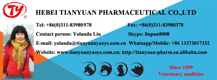 TIANYUAN PHARM products can apply in Ruminant, Cattle ,Fowl, Horse, Camel, Poultry, Chicken, Aquatic animals, Pets, Sheep, Pig etc.