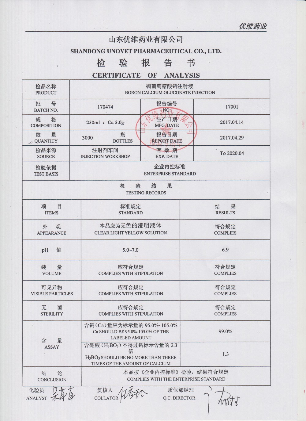 gmp veterinary medicine injection 2% boron calcium gluconate
