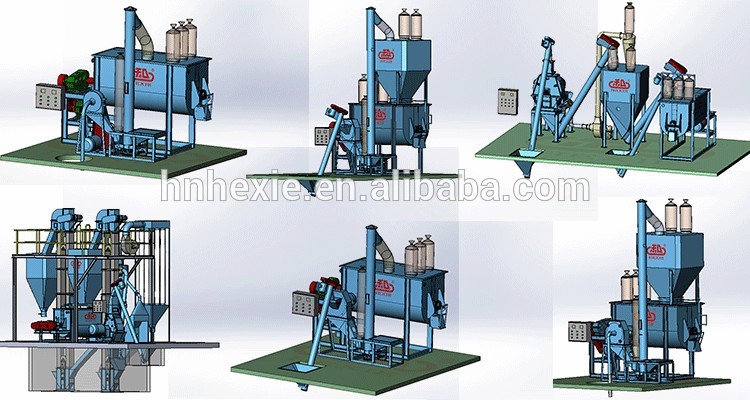 | HXFW-1000 | 9FQ510×200 /9FC350×120 grinder | 9HWP-1000G feed mixer | 33/29 KW | 1-2 t/h |