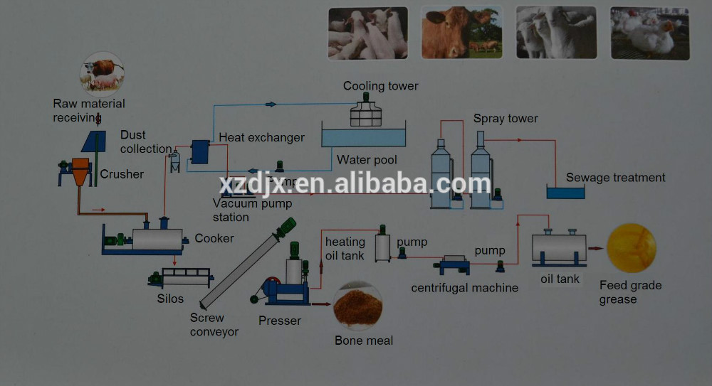 The feather of poultry slaughterhouses and fur animals, bones, offal, meat, carcassing and inner structures remain, the dead poultry, animal during transport and animal carcasses. All can be made into high protein feather meal, bone meal,chicken meal,