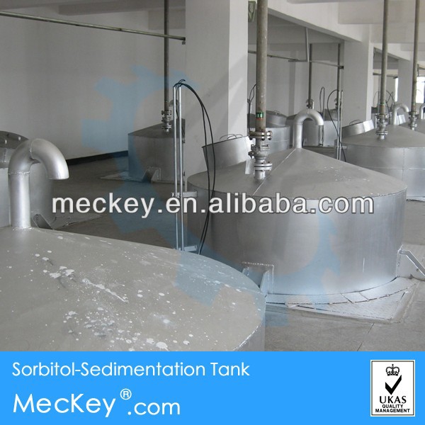 (5) Sedimentation and filtration: After sedimentation tank, the accelerant is separated from the crude sorbitol, then recycled and reuse. The material is sent to the next section after filtration.
