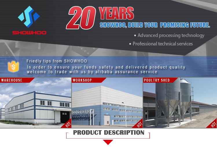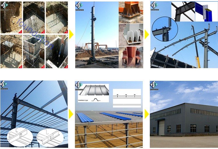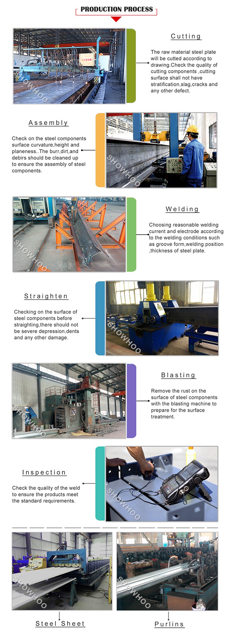 | Fast build | Steel structure come pre-welded, pre-drilled and pre-punched at our factory. just need to connect by bolts with the accuracy of steel components , no need to weld in construction site. One 1000 sqaure meter steel structure building just needs around 25 days to install with 5 workers. |