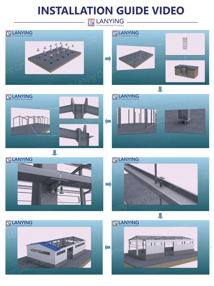 2) In order to give you an exactly quotation and drawings, please let us know length, width, eave height and local weather. We will quote for you promptly.