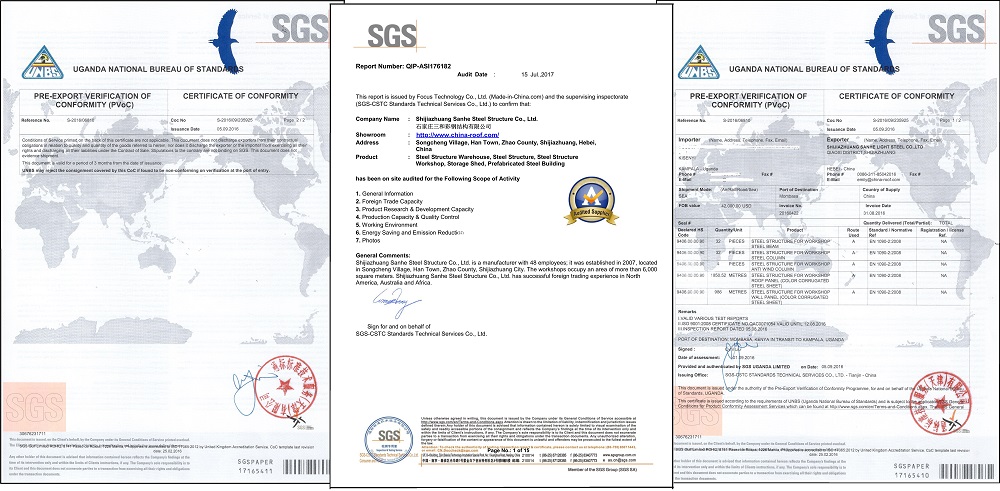 "Shijiazhuang Sanhe Light Steel Co., LTD." is professional manufacture who's devoted to steel structure construction. We provide the whole set of services include making construction designs, producing products and installation.
