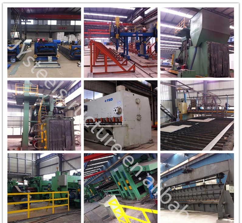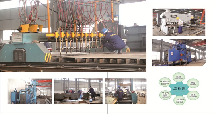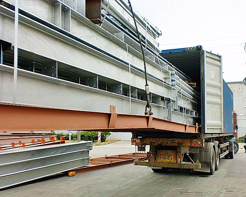 | Steel frame | 1. Welded or hot-rolled H section column & beam used to build up steel frame and steel platform for multi storey apartment buildings. 2. Steel pipe, steel rod or steel angle are used to build up frame elevation of roof & wall if sandwich panel is used for cladding system. 3. C/Z section channel (surface treatment is hot glavanized) are used as purlins for cladding system. 4. Galvanized steel rod and steel pipe are used to strengthen the connection between purlins. 5. Steel angle is used to enhance the connection between purlins and cloumns or beams. 6. Crane can be customized according to customer's request. |