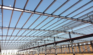C or Z section channels (surface treatment is galvanized, no easy to rust) are used to build up the roof steel frame. Cable bracing are used to enhance the links bewteen two steel frame.