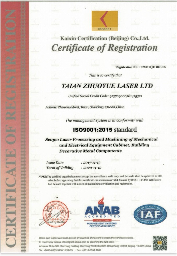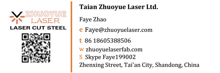Taian Zhuoyue Laser Ltd. is specializing in custom sheet metal fabrication for different kinds of materials with high precision laser cutting, CNC punching, bending, welding, powder coating and assembly services for over 20 years . As a factory with 20000 square meter workshop and 60 skilled workers , we are able to save cost of labor and shorten production lead time, which enables us to compete with others.