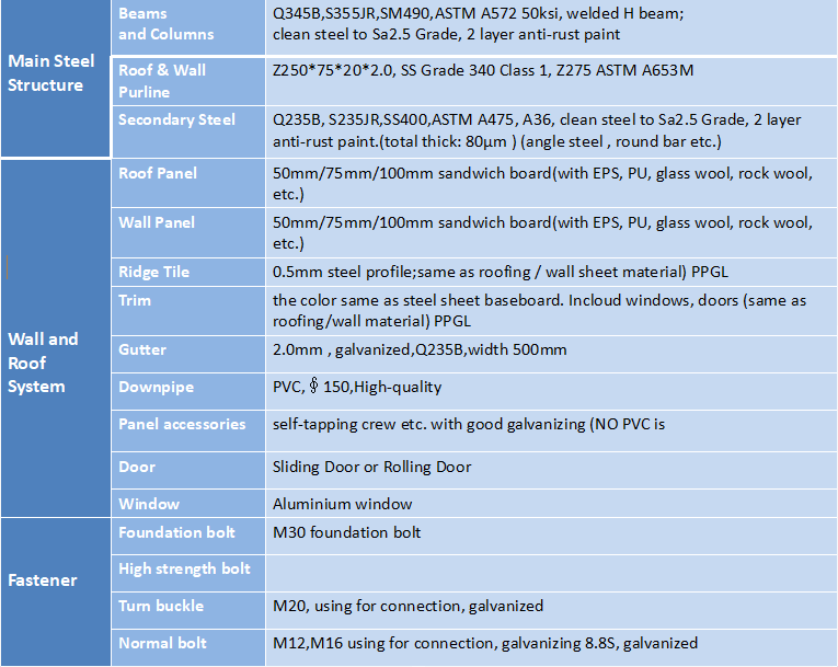 11.What’s the technical specification of GAOYA light steel building products?