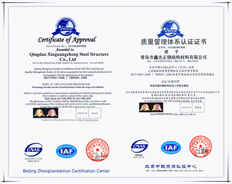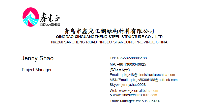 Qingdao Xinguangzheng Steel Structure Co.,Ltd, we are group with five factories from 1996 year. We are the biggest and earliest steel structure product exporter and manufacture in North of China .