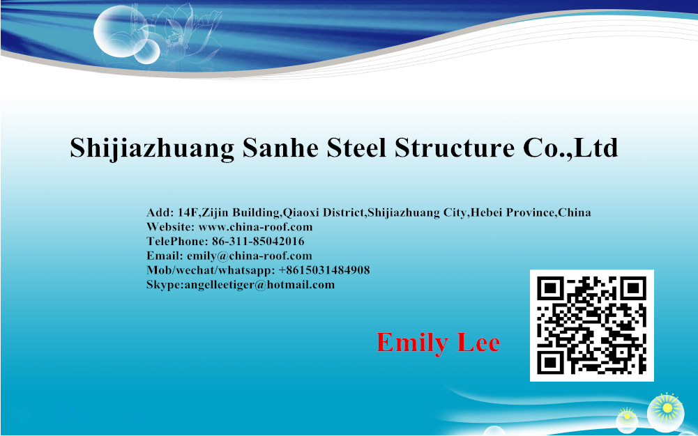 "Shijiazhuang Sanhe Light Steel Co., LTD." is professional manufacture who's devoted to steel structure construction. We provide the whole set of services include making construction designs, producing products and installation.