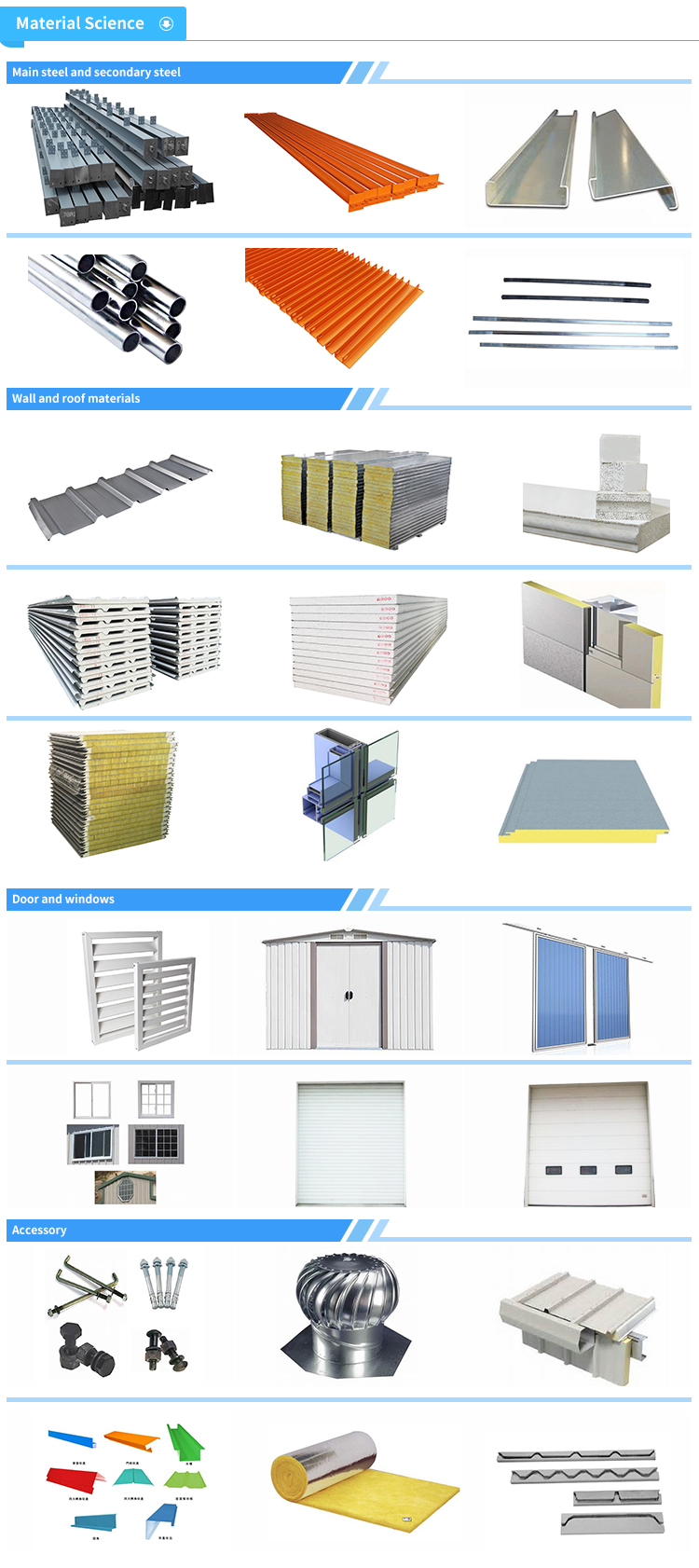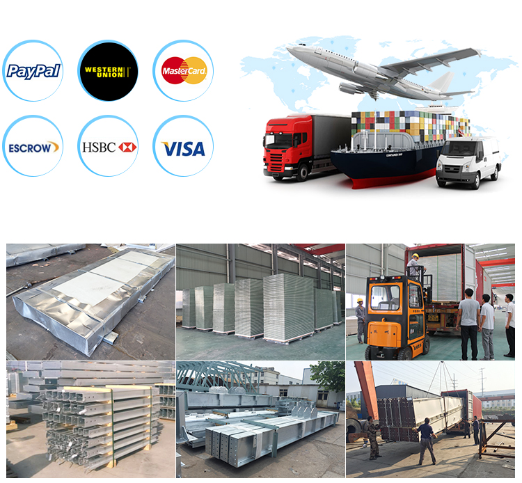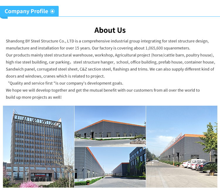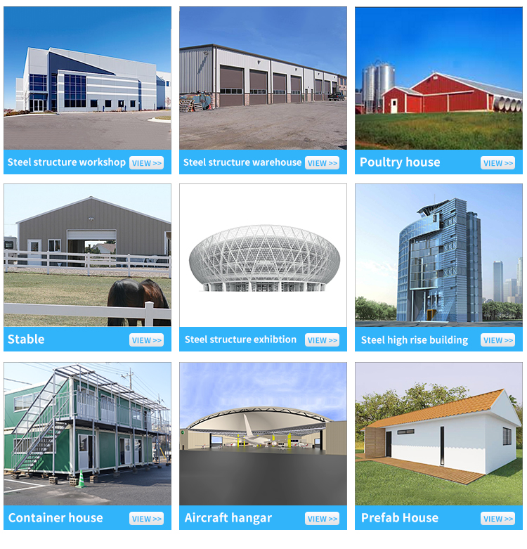 5. Building Type: Steel Structure steel structural warehouse building, workshop building, Agricultural building (horse/cattle barn, poultry house), high rise steel building, heavy industrial steel structure buildings, car parking, aircrafts hanger,steel structure hanger